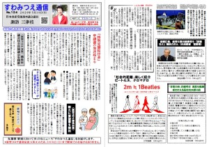 すわみつえの、最新の政策・実績・情報・お知らせ等を掲載しています。 月4回作成・更新しております。ぜひご覧ください。