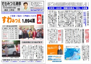 - すわみつえ市議会議員選挙当選のお礼